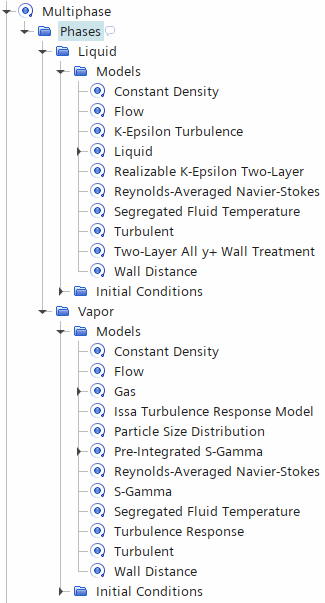 流经垂直管段的两相 Liquid 和 Vapor 表示水和蒸汽。通过在欧拉物理模型下创建相来定义这些相,但稍后在选择所有其他模型后,设置材料特性。