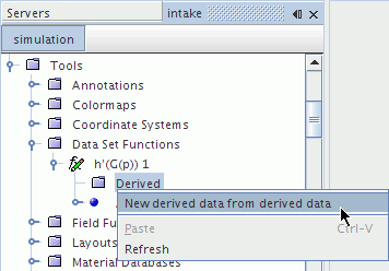 点衍生数据集由管理器的子节点表示,该节点具有弹出菜单。