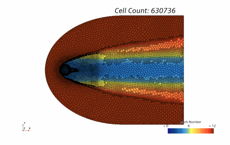 注 如果要清除求解并重新运行模拟,务必确保已在清除求解对话框中激活了重置网格。 下图演示了 10 个细化周期之后的结果: