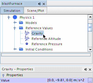 设置参考值 必须定义基准值,以确保重力产生的加速作用在预期的方向。要设置重力基准值: 选择连续体 > 物理 1 > 基准值 > 重力节点,然后将值设置为 [0.0, -9.81, 0.0] m/s^2。