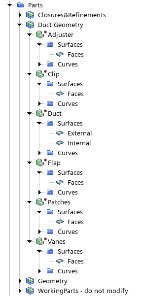 导入组成 HVAC 管道几何的所有部件文件,并将适当的标签指派给部件和表面。