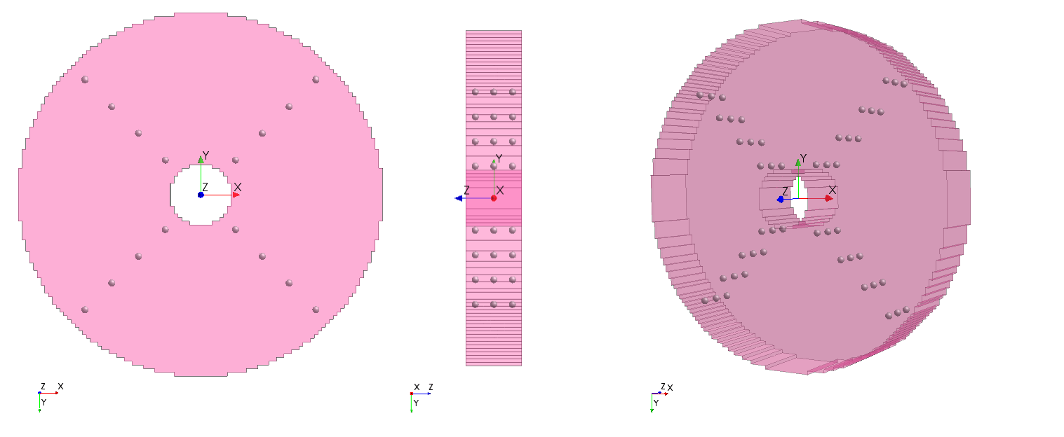 在上图中,可以看到标记为点的容器,以及体积源项影响的体网格的相应网格单元。由于盘体网格是圆柱,因此与内半径的容器(红色网格单元)相比,外半径的容器(蓝色网格单元)会影响体网格的更多网格单元。