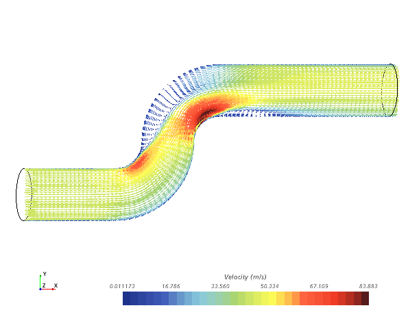 本教程介绍了不可压缩流体以不同雷诺数流经等直径 S 形弯管的情形。