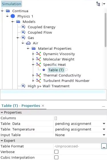 在 Simcenter STAR-CCM+ In-cylinder 中使用 ECFM 燃烧模型时,可以通过编辑 ecfmProp.mdb 材料数据库将蒸汽组分比热定义为温度表。有关更多信息,请参见修改材料数据库的副本。