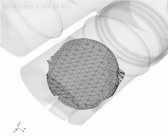 由于阀和交叉管表面极为接近,包面会去除两个部件之间的间隙。防接触用于改善这些区域中产生的不良定义。最小尺寸是根据两个部件之间的间隙计算的,该间隙约为 1 mm。在这种情况下,不需要对阀部件进行更多细化,因为它是平面的。