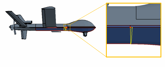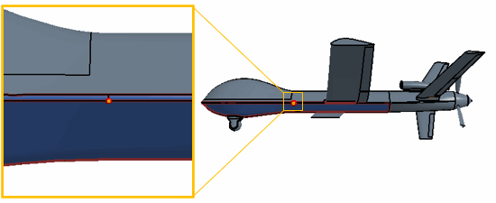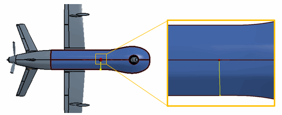 对机身执行自由形式表面之前,将体分割为六个表面。较小的表面可减少对表面进行自由形式表面操作的计算时间,还可生成更精确的表面定义。