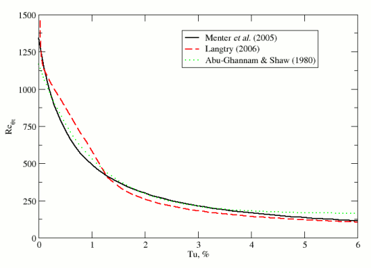 (1529)此表达式后经 Langtry [378] 修订,旨在改进较低自由流湍流强度时的结果,如下所示: