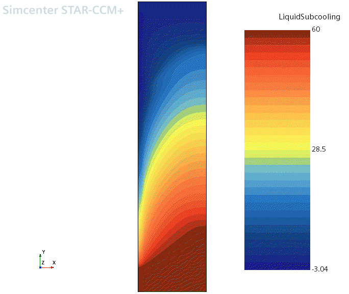 要查看的第一件事情是蒸汽体积分数分布并将其与流体过冷进行比较。可通过切换为此标量场景选择的标量场来完成此比较。