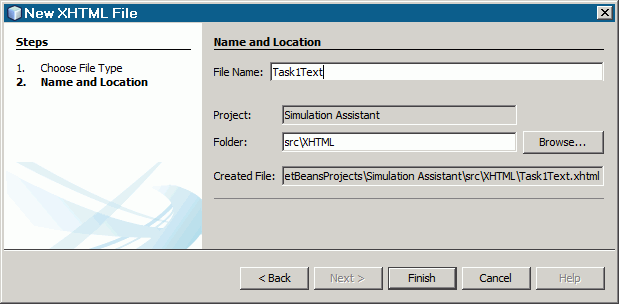 - 单击结束。XHTML 文件已添加到 Java 包。 根据工作流要求添加任意数量的 XHTML 文件。