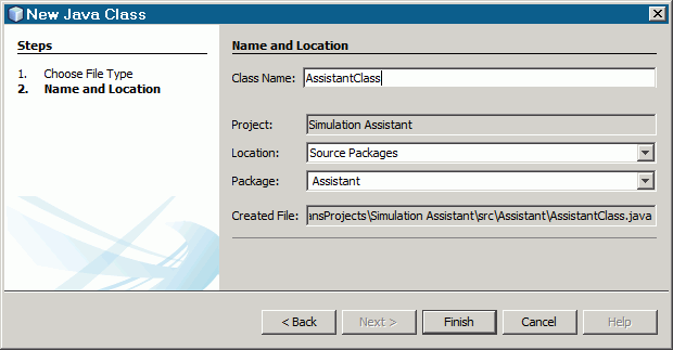 - 单击结束。Java 类已添加到 Java 包。 根据工作流要求添加任意数量的类。