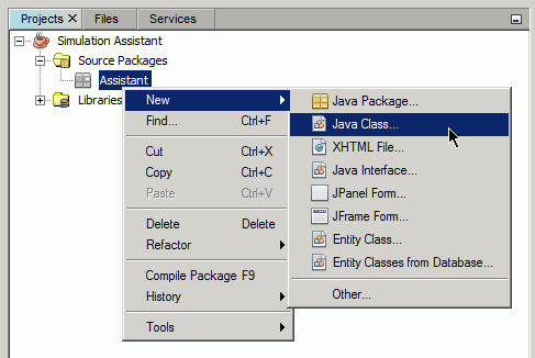 通常,模拟助手项目包含两个 Java 包,一个用于助手程序,另一个用于显示在助手用户界面中的 XHTML 文本。