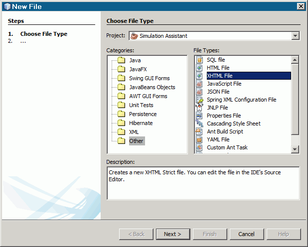 此时将显示 New XHTML File(新建 XHTML 文件) 对话框。