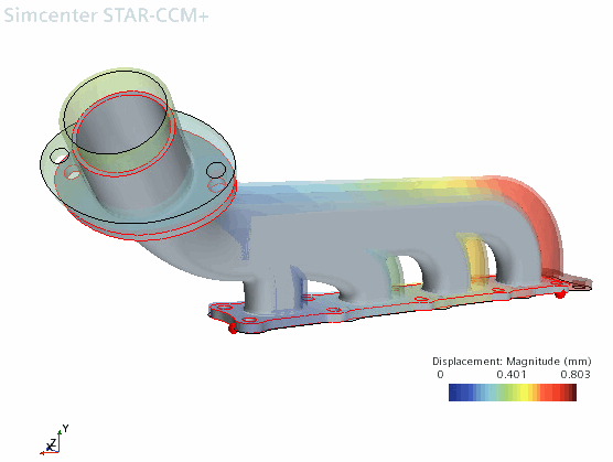 打开位移和 von Mises 应力场景,以可视化响应热负荷与内部应力的歧管膨胀。