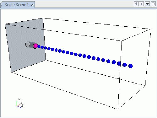 A part injector represents a collection of injection points that are extracted from the geometry of the parts of the injector. If desired, the points can be a subset of the points that are defined on the parts. The point inclusion probability property of the injector sets the probability that a particular point is used. An example of a part injector (defined by three line probes) is shown below.