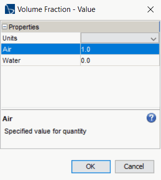 设置初始条件和重力 在模拟开始时,模拟域仅包含空气。 将重力矢量设置为负 Y 方向。 设置物理 1 连续体的初始条件和重力: 选择物理 1 > 初始条件 > 体积分数节点,并将值设置为 [1.0, 0.0]。 选择物理 1 > 基准值 > 重力,然后将值设置为 [0.0, -9.81, 0.0]。 保存模拟。
