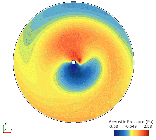从非稳态模拟求解(充分发展流的求解)开始,激活声波模型,指定噪声源区域,然后运行模拟以计算声压。