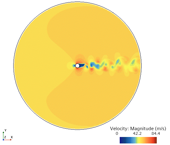 圆柱体上的流由如下所示的速度幅值场景解释说明: