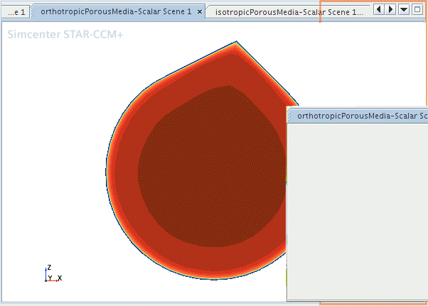 单击图形窗口顶部的 orthotropicPorousMedia 标量场景 1 选项卡并将其拖至右侧。窗口边缘出现红框标示带状边界时,松开鼠标按键,如下图所示。