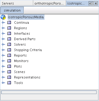 选择并打开 isotropicPorousMedia.sim 文件。其模拟树会在资源管理器窗格中显示。