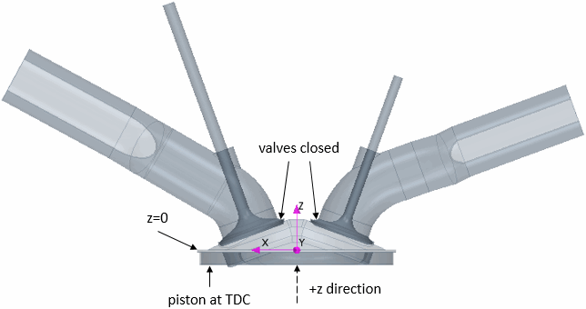 - The cylinder must be positioned so that the piston motion is along the z-axis, with the compression stroke moving the piston in the positive z-direction.