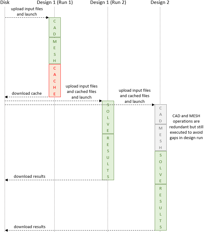 下图说明了对具有和没有地暂存空间的群集使用网格重用进行的设计运行: