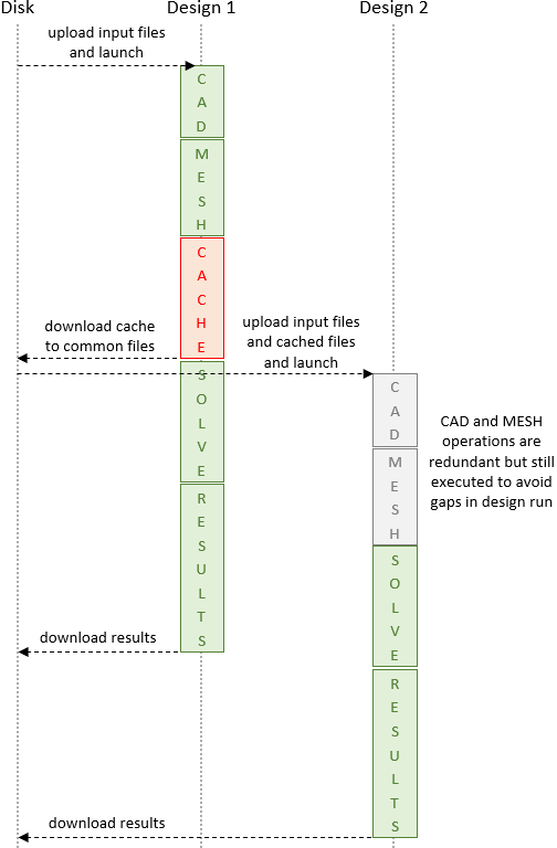 为了在具有本地暂存空间的群集上通过网格重用运行设计研究,Design Manager会将需要生成网格的设计拆分为两次运行。第一次运行执行设计直到网格操作完成,然后缓存网格,最后关闭。第二次运行将重新加载缓存的网格并继续完成剩余的设计操作。无需生成网格但要重用缓存网格的设计不会拆分为两次运行。使用图形窗口中的输出表可以跟踪设计运行的状态,请参见监视设计研究。