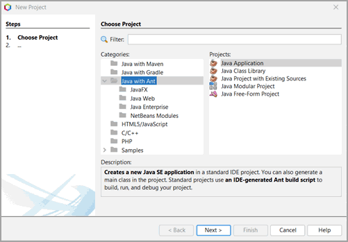 - 根据正在使用的 NetBeans 版本,从类别列表中选择 或 。