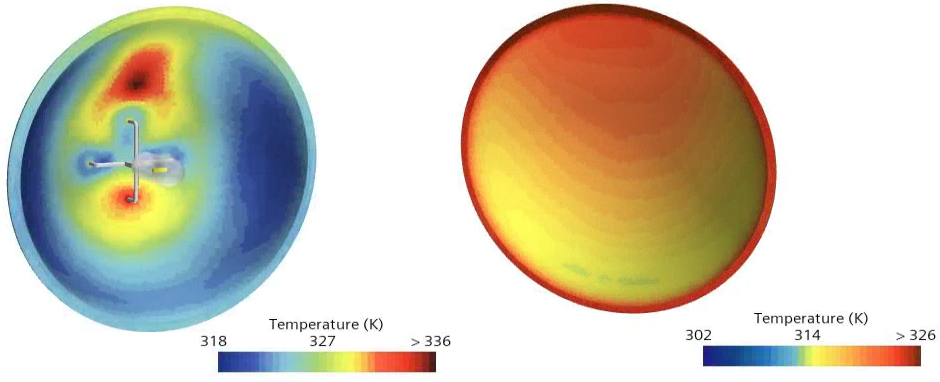 The following screenshots show the temperature distributions on the reflector and the lens of the headlamp.