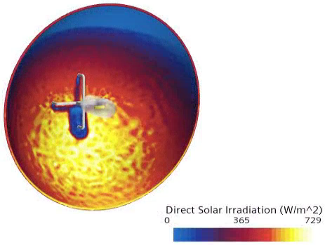 The following screenshot shows the direct solar irradiation on the reflector of the headlamp: