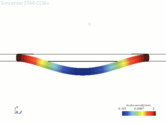 打开 Y-位移和压力标量场景,以可视化受体载荷和流体压力影响的管位移。