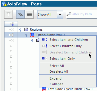 可选择能够包含求解或网格数据的父对象(如区域)。可能有四种不同的选择状态。