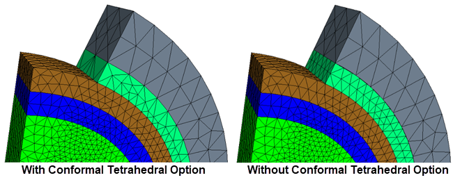 使用四面体网格生成器时,可以在分配给不同自动网格操作的部件之间生成共形网格。