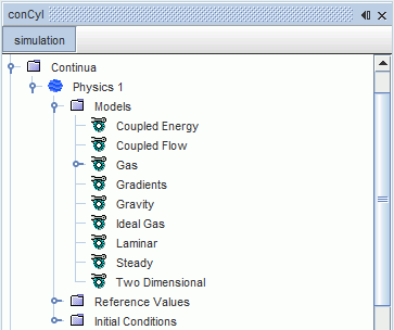 启用模型 二维(自动选择) 时间 定常 材料 气体 流体 耦合流体 梯度度量 梯度(自动选择) 状态方程 理想气体 能量 耦合能量(自动选择) 粘性项 层流 可选模型 重力 - 单击关闭。