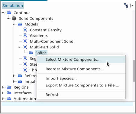 组合框 模型 空间 三维 时间 定常 材料 多组分固体 多组分固体 多部件固体 可选模型 分离固体能量 梯度(自动选择) 状态方程 恒密度 - 单击关闭。