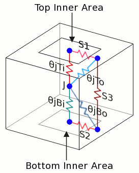 Star 网络适用于不可忽略侧面热传递的封装。例如,在引线封装内,通过侧面的热流道会显著影响封装温度。可用的 Star 网络假设各侧面上的温度均匀。