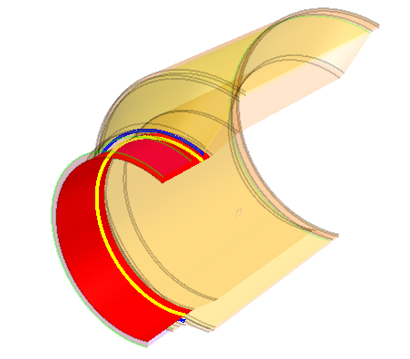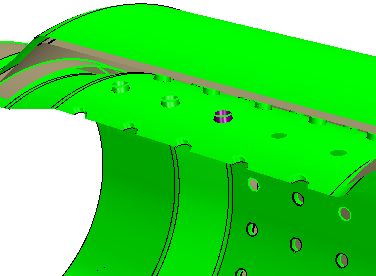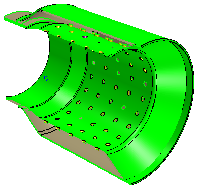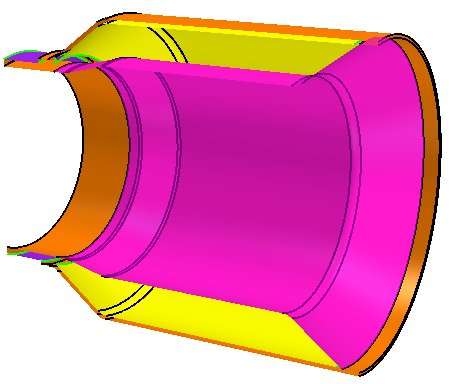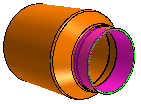 尾饰管之一是具有内部部件的片体。此部件中缺少一些表面,因此 3D-CAD 无法将其用作实体。要在网格化中使用此体,必须在将其转换为实体之前重构内部部件。