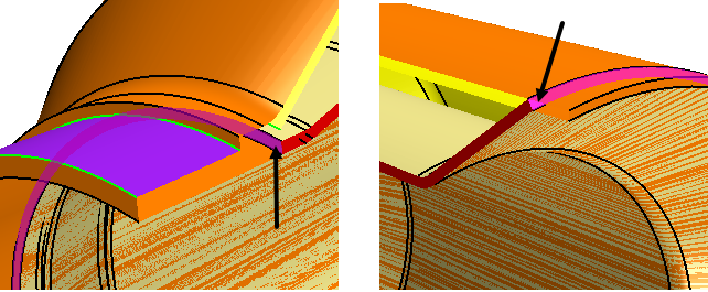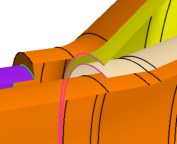 对于尾饰管末端附近的桥接表面,同时选择下图所示的多条自由边。