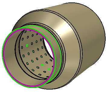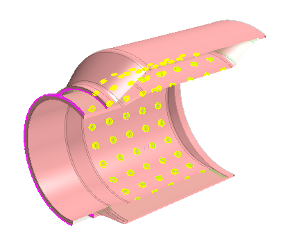 在重构内部之前,创建草图平面,用于投影某一穿孔。然后,在修复尾饰管内部后,可以使用已投影草图重新创建穿孔。