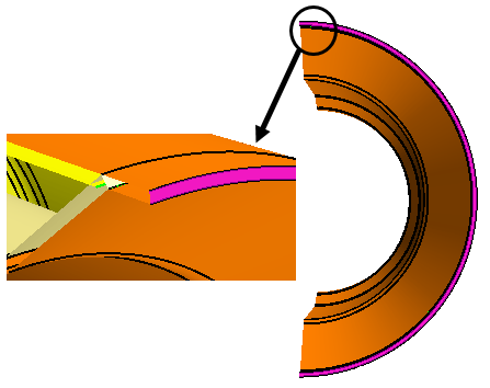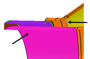 同时选择尾饰管入口处的内面和浮动内表面的前缘,如下所示。