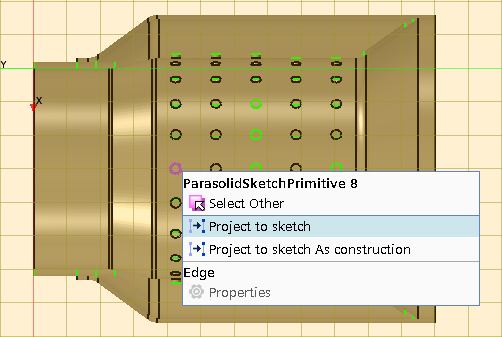 在图形窗口中,放大下图所示的孔的边,然后单击鼠标右键并选择映射至草图。