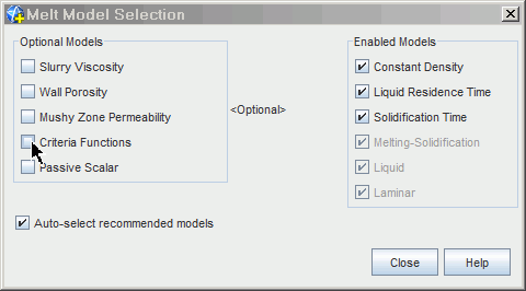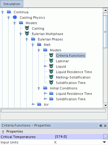 标准函数节点、液体停留时间节点和凝固节点将添加到模拟树中的欧拉相模型。 初始条件节点将添加到欧拉相中。