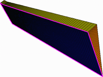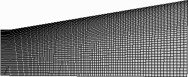 轴对称环形段 下图显示了厚度为一个网格单元的六面体网格示例,轴旁边有一个楔形状的网格单元,以模拟经过轴对称扩散器的流。 原始模型是含循环边界的三维模型。 Simcenter STAR-CCM+ 不可用于创建上述网格。 但是,可以从某一循环边界上的面网格中抽取网格的 2D 轴对称版本。 生成的 2D 轴对称网格(可在 Simcenter STAR-CCM+ 中使用)由四边形网格单元组成。