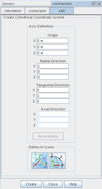创建局部坐标系 通过径向网格速度定义圆柱壁运动。必须创建局部圆柱坐标系,以在其中将径向速度定义为默认不存在。 右键单击工具 > 坐标系 > 基准 > 局部坐标系节点,然后选择新建 > 圆柱。 创建圆柱坐标系对话框将出现在编辑窗口中。此分析可以接受默认参数,因为新坐标统的径向与全局笛卡尔坐标系的 X 轴方向一致,并且新坐标系的轴向与全局坐标系的 Z 轴重合。 单击创建,然后单击关闭。
