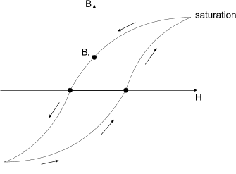 而降低,直至材料达到(反向)饱和)。当应用的磁场为零(即,