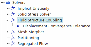 As well as adding FSI control, Simcenter STAR-CCM+ adds the Fluid Structure Coupling solver to the Solvers node.