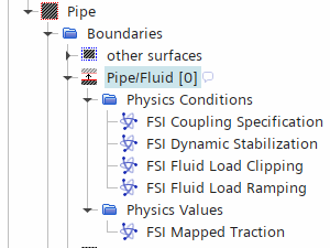 Boundary-mode interfaces are not supported as fluid-structure interfaces. By default, the Fluid Structure Coupling solver enforces the use of compatible settings (see Model Compatibility). If you run an FSI simulation with a boundary-mode fluid-structure interface, Simcenter STAR-CCM+ stops the simulation and issues a warning.