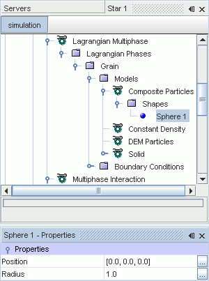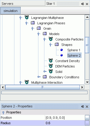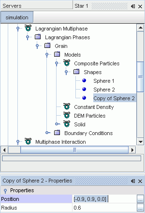 在 Simcenter STAR-CCM+ 拉格朗日相中,每个球体由形状管理器下的球体节点表示。 选择节点可访问对应球体的属性。