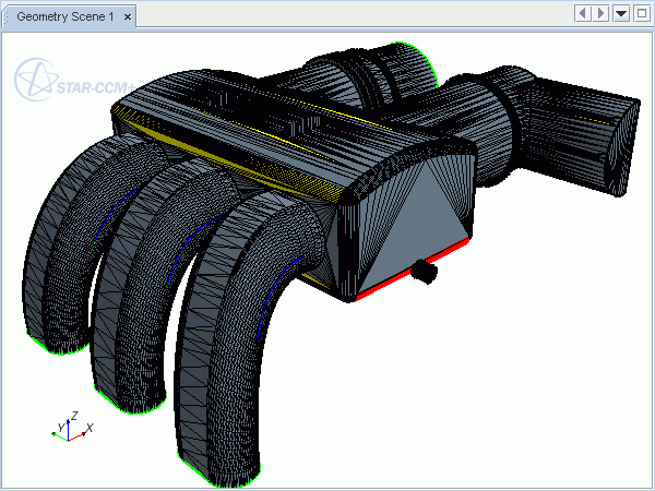 恢复先前显示的场景面- 执行显示更改时,Simcenter STAR-CCM+ 会同时存储当前显示的面子集和先前显示的面子集。激活后,此选项可用于在修补表面场景中的当前面子集和上一个面子集视图之间切换。