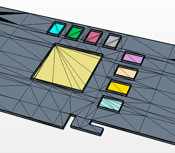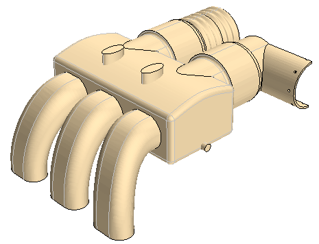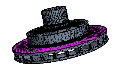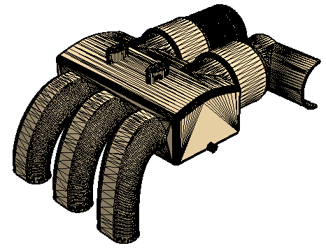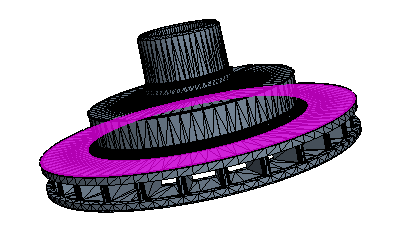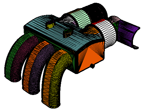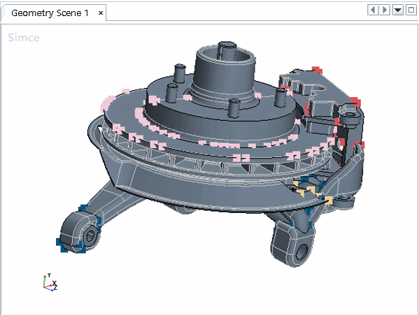 米黄色面表示其基础 CAD 可在网格化过程中用于 CAD 投影的表面。深灰色表面表示没有 CAD 关联的表面。下面是 CAD 关联颜色模式的示例。
