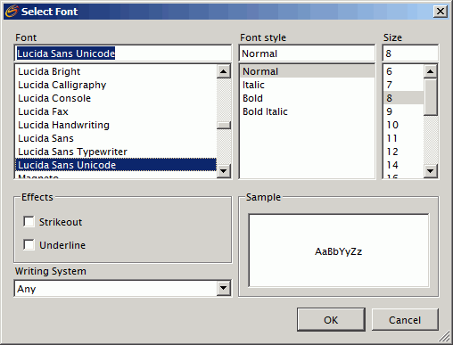 在 Select Font(选择字体) 对话框中,对字体设置进行适当的更改。